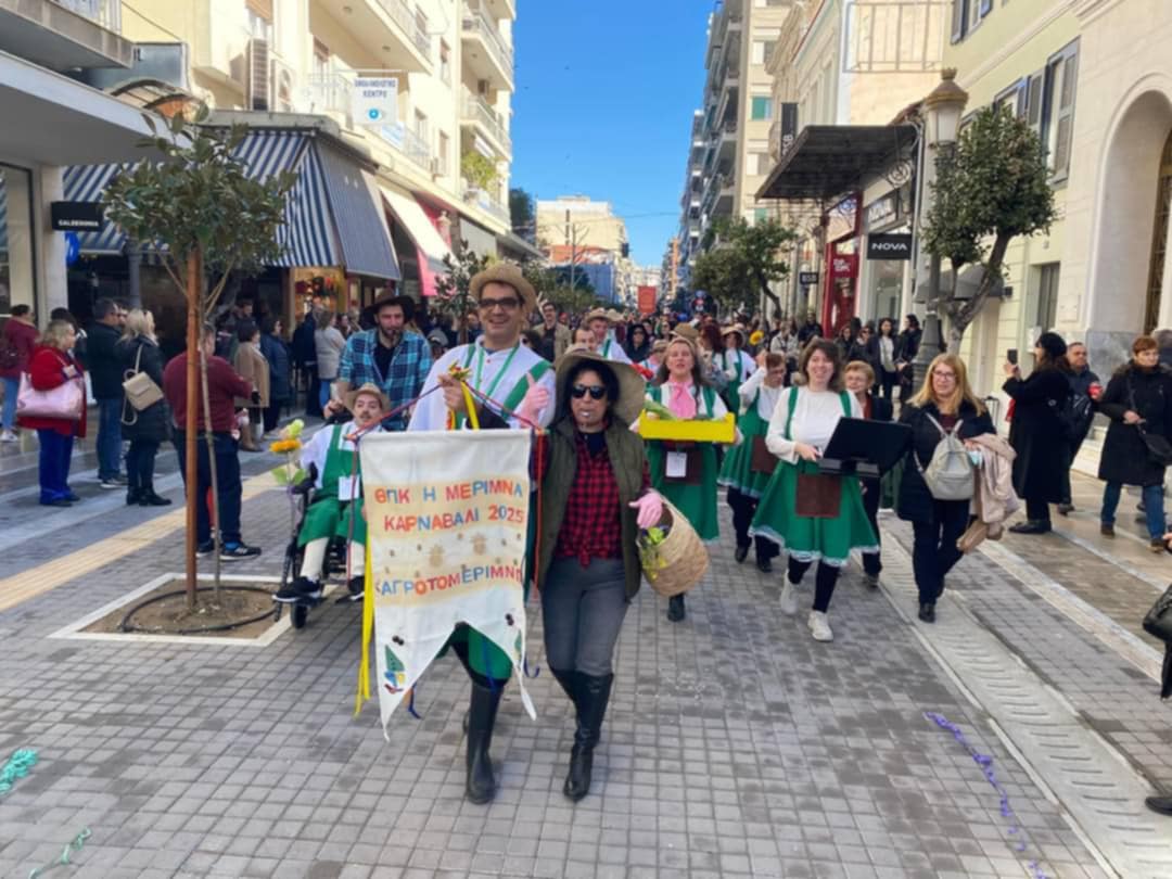 Το πλήρωμά μας, με 40 μέλη, είχε τίτλο “ΑΓΡΟΤΟ – ΜΕΡΙΜΝΩ” όπου η αμφίεση παρέπεμπε σε αγρότες και αγρότισσες.