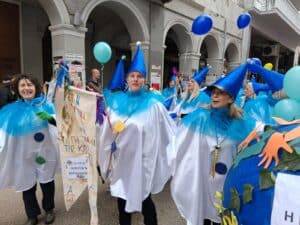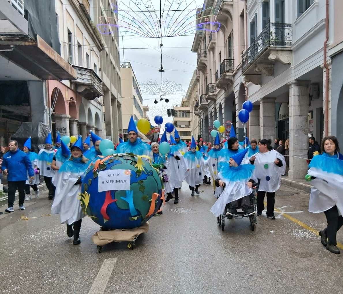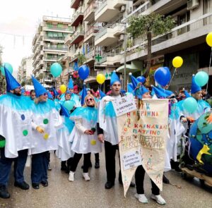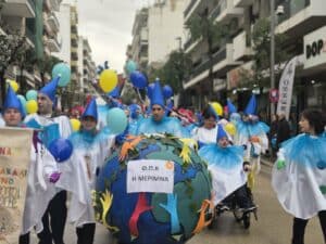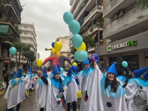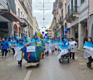 Η φετινή μας συμμετοχή είχε ιδιαίτερη σημασία καθώς η κατασκευή που μας παραχωρήθηκε από την ΚΕΔΗΠ και το Καρναβαλικό Εργαστήρι – μια υπέροχη υδρόγειος σφαίρα 🌎– έγινε το κεντρικό στοιχείο της συμμετοχής μας, υπενθυμίζοντας σε όλους τη σημασία της προστασίας και της αγάπης προς τον πλανήτη μας.